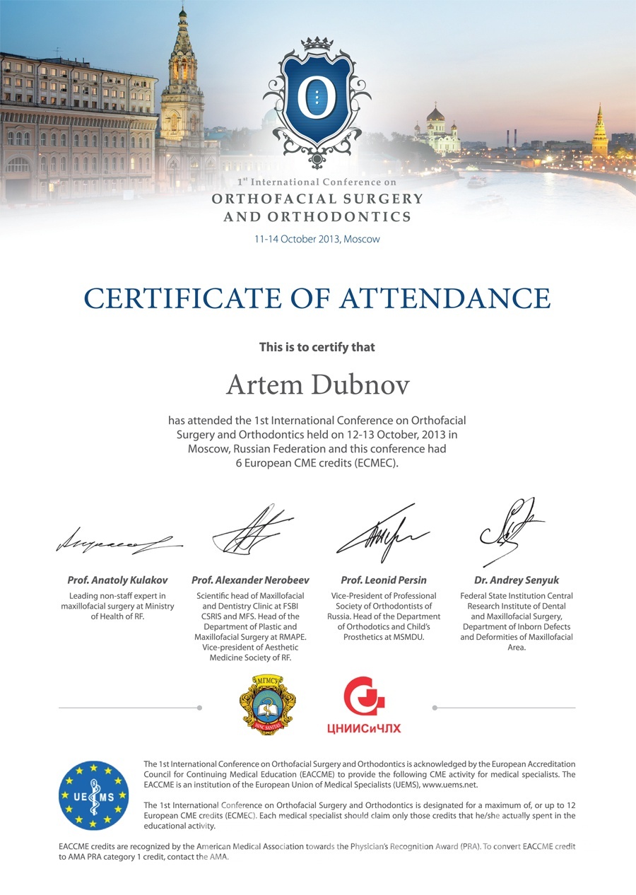 2013 & ndash; Internship and Masters in orthognathic surgery in the maxillofacial department of the medical center & laquo; Teknon & raquo; (Barcelona, Spain) and the International University of Catalonia (Barcelona, Spain)