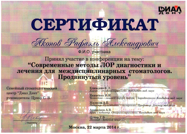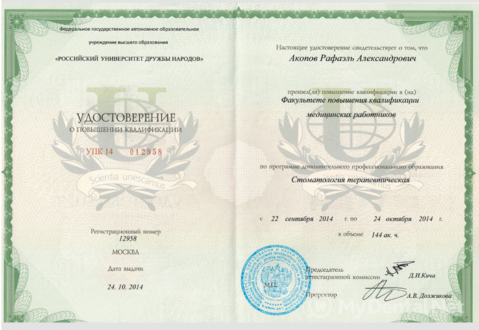 Окончил Кубанскую Государственную Медицинскую Академию (Краснодар), стоматологический факультет. В 2002-2003гг. проходил Клиническую интернатуру в Краснодарском унитарном лечебно-диагностическом объединении. В 2009 г. стал лауреатом финала Чемпионата стоматологического мастерства в номинации «Эндодонтическое мастерство» Стоматологической Ассоциации России. Участвовал в выставках Dental Salon и Mos Expo Dental в качестве врача консультанта и проводил мастер-классы по применению технологии САФ. Ведет мастер классы: «Применение оперативного микроскопа в эндодонтии» в клиниках «Дента-Эль», «Президент».