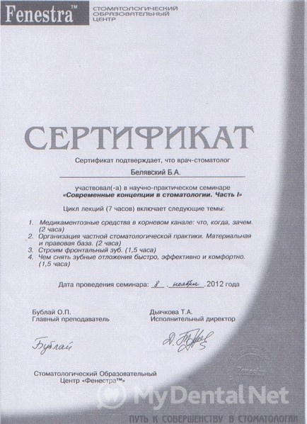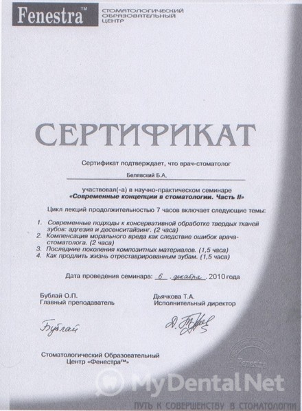 Многократно проходил тренинги по совершенствованию стоматологических навыков.