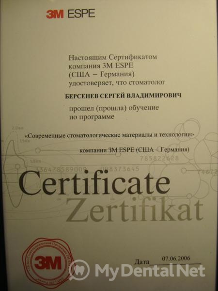 6-7 июня 2006 прошел обучение по программе «Современные стоматологические материалы и технологии компании 3M ESPE» г.Москва.