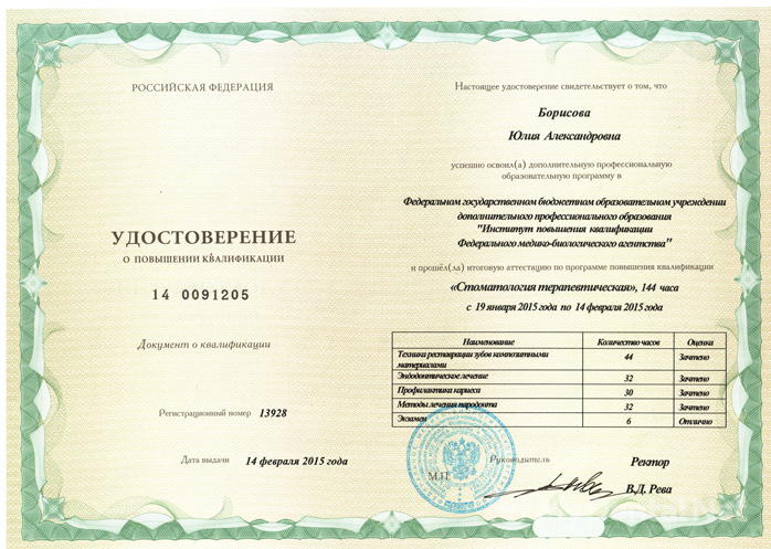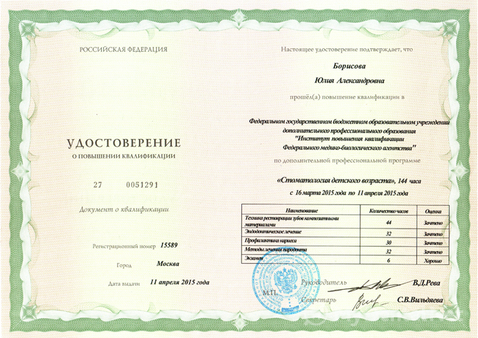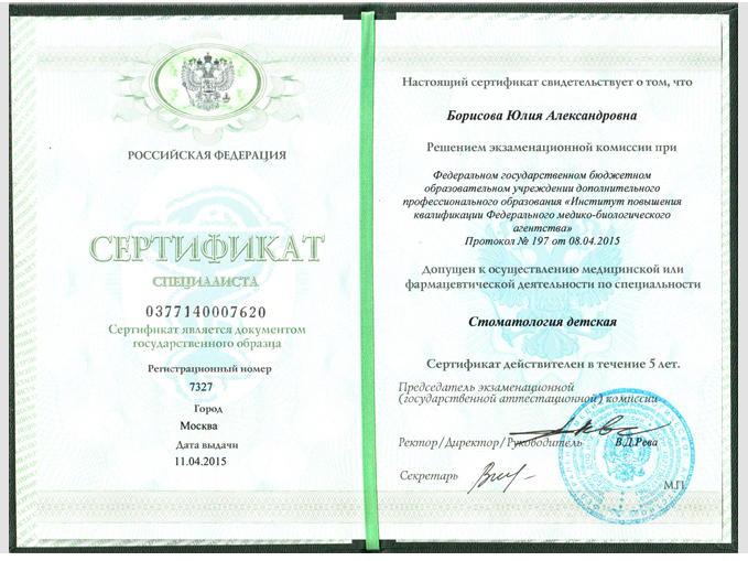 Общий стаж работы 17 лет. В 1994 году закончила Санкт- Петербургский ГМУ им. академика И.П.Павлова. Врач высшей категории. Большой опыт работы с детьми, владеет всеми современными методами лечения молочных и постоянных зубов. Всегда находит общий язык с маленькими пациентами. Комплексно подходит к лечению детей в сотрудничестве с логопедом, ортодонтом, ЛОР-врачом. Владеет методиками художественной реставрации постоянных зубов у взрослых пациентов. Для многих является семейным стоматологом, т.к. лечит и взрослых и детей. Много времени уделяет повышению квалификации: посещает стоматологические конференции, семинары, мастер-классы. Владеет лазерными методиками лечения стоматологических заболеваний у взрослых и детей.