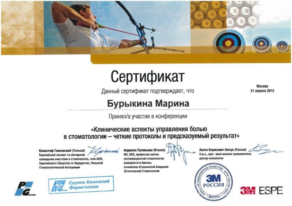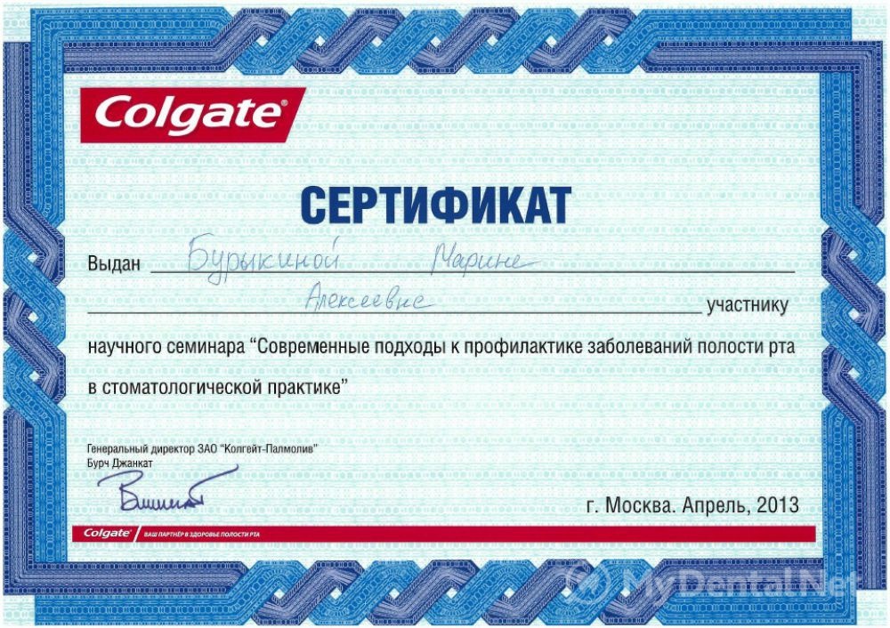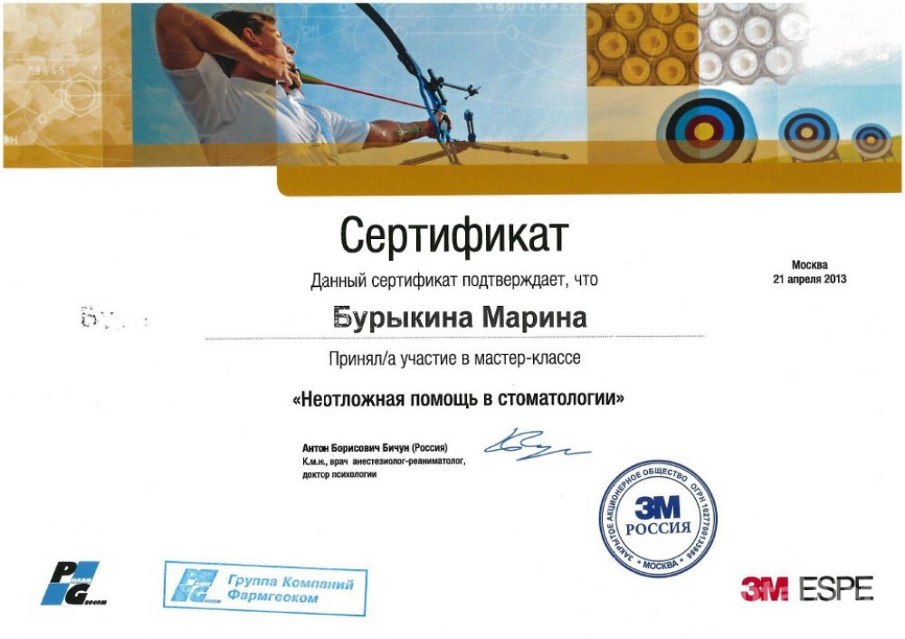 2013 г. – участник научного семинара «Современные подходы к профилактике заболеваний полости рта в стоматологической практике»
