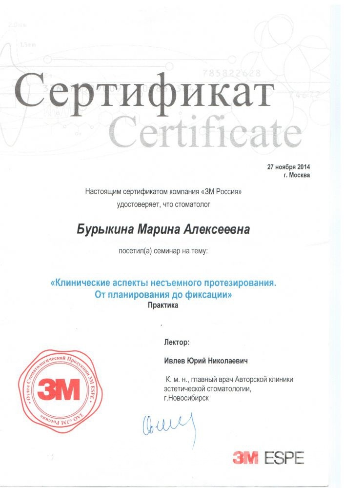 2014 г. – Мастер-класс «Клинические аспекты несъемного протезирования. От планирования до фиксации»