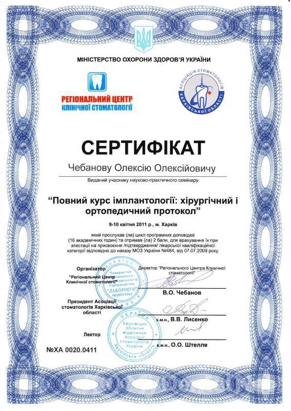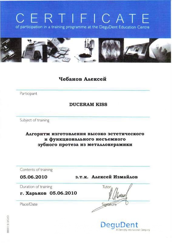 С сентября 2010г. по ноябрь 2010г. специализация на базе Харьковской медицинской академии после-дипломного образования. Специальность - врач-стоматолог-терапевт.
