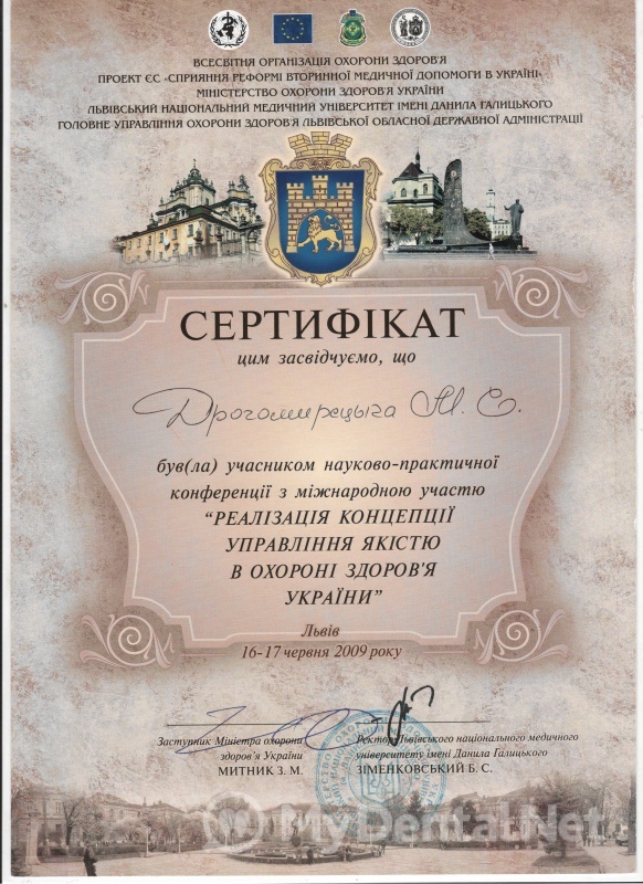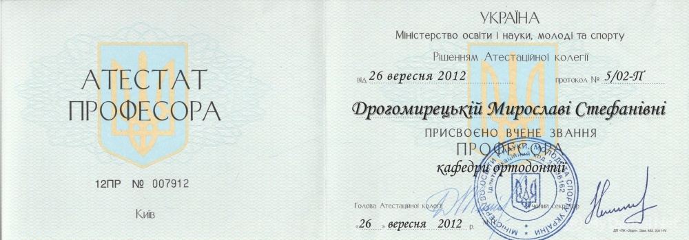 Заслуженный врач Украины. Главный ортодонт МОЗ Украины. Президент Ассоциации ортодонтов Украины. Член Международной Ассоциации ортодонтов. Член Европейской Ассоциации ортодонтов. Заведующий кафедрой ортодонтии НМАПО им.П.Л.Шупика. Профессор.