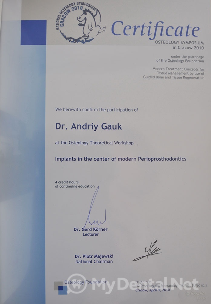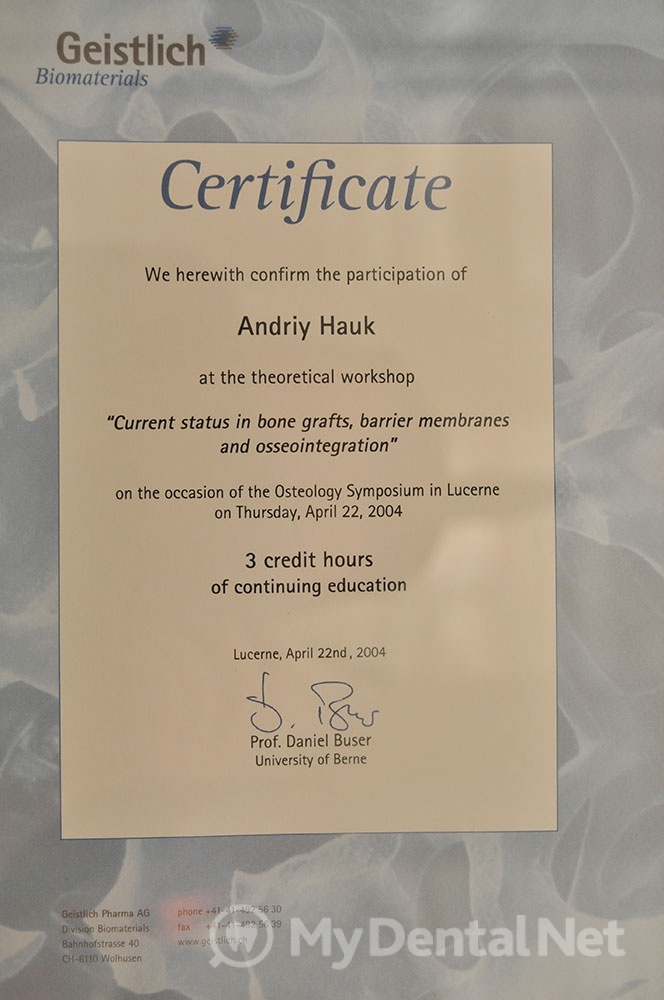 Веду авторские учебные курсы компаний Leader. Connect, читаю лекции по имплантологии в Львовском медицинском институте.