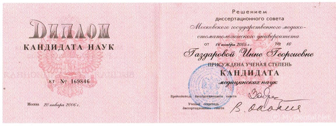 Решением диссертационного совета МГМСУ удостоена учёной степени кандидата медицинских наук