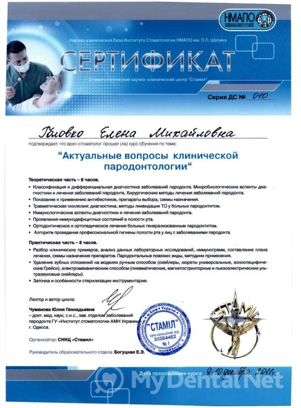 С 2011 года работает в стоматологическом центре "ДАНТИСТ".