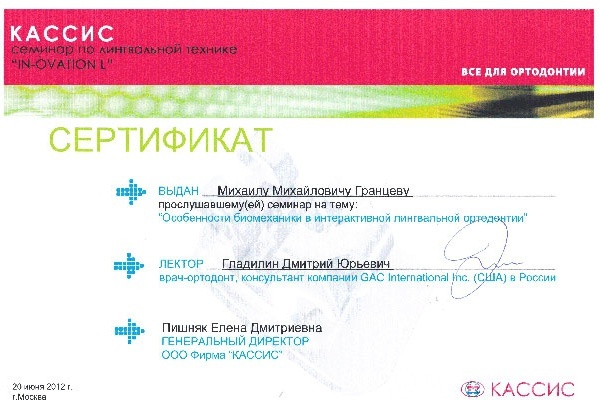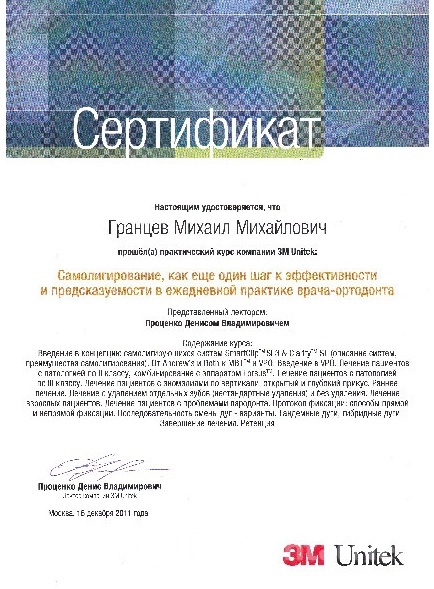 3. «От консультации до снятия. Базовые теоретические знания и практические аспекты для ординаторов и начинающих ортодонтов» 1Б уровень Тихонов С.В.(Россия) Москва 11-15 апреля 2013 год.