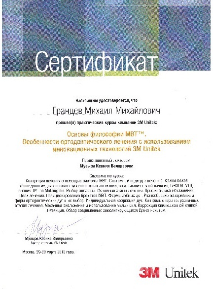 17. МBT: Практический курс компании 3M Unitek: «Основы философии MBT. Особенности ортодонтического лечения с использованием инновационных технологий 3M Unitek» Лектор: Музыра Ксения Валерьевна (Россия) 29-30 марта 2012 год.