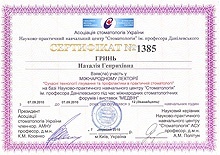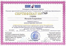 Врач – инструктор учебного центра Ассоциации стоматологов Украины.