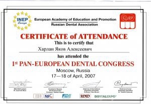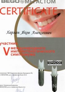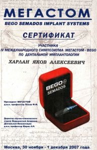 В 2007 году прослушал цикл лекций и прошел сертификационный курс на клинической базе компании Ihde Dental AG по специальности базальная одномоментная имплантация с немедленной нагрузкой.