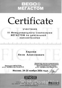 В 2006 участник 3-го международного симпозиума МЕГАСТОМ по дентальной имплантологии.