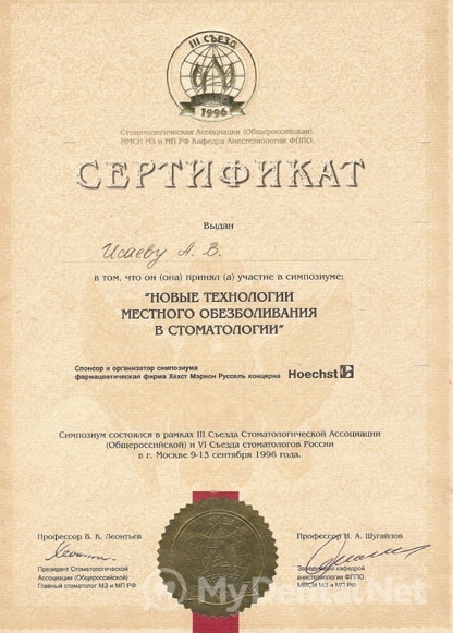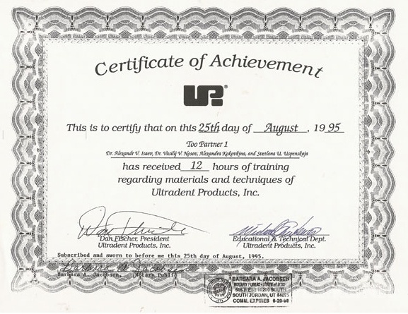В 1995 году совершенствовал врачебное мастерство в Солт Лейк Сити (США) на фирме Ultradent, производителе медикаментов и материалов для стоматологии.