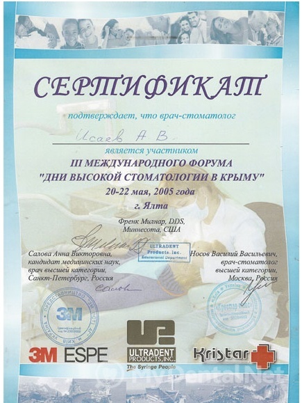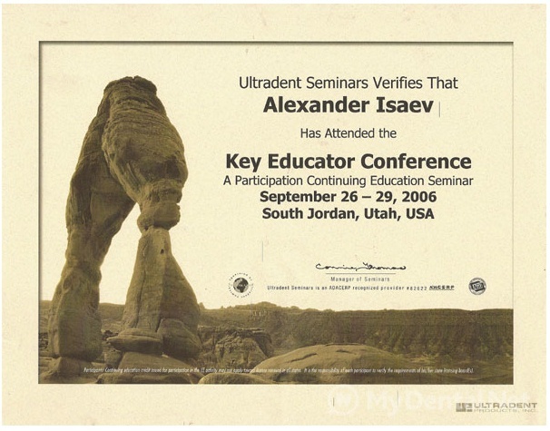 Выступал с докладом по применению материала Ultraseal XT Plus (Ultradent) у взрослых и детей на конференции "Охрана здоровья материнства и детства" в Московском Гос. мед. университете им. Семашко.