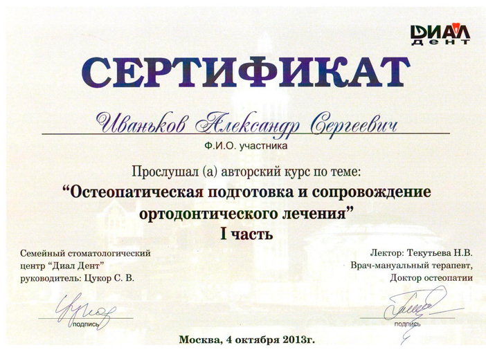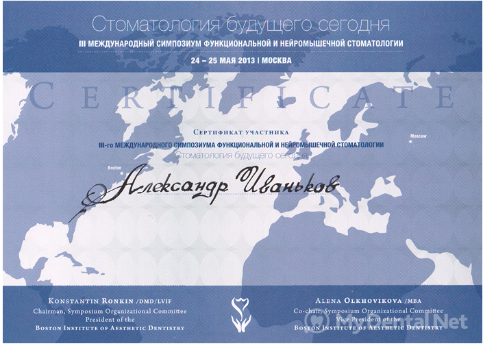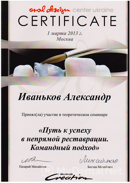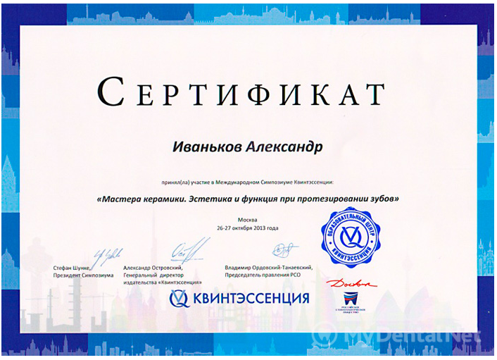 Иваньков А.С. стремится всегда быть в курсе новых методов лечения, появляющихся в стоматологии, постоянно совершенствует свои навыки, посещает симпозиумы, лекции, мастер-классы известных стоматологов.