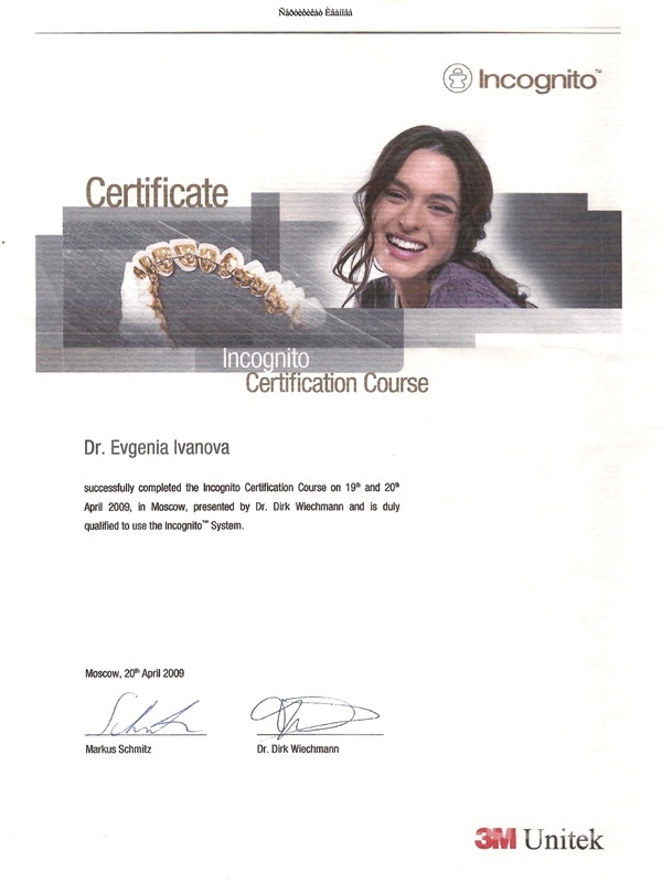 2007 г. — семинар «Лингвальная техника прямого приклеивания», Dr. Vittorio Cacciafesta.