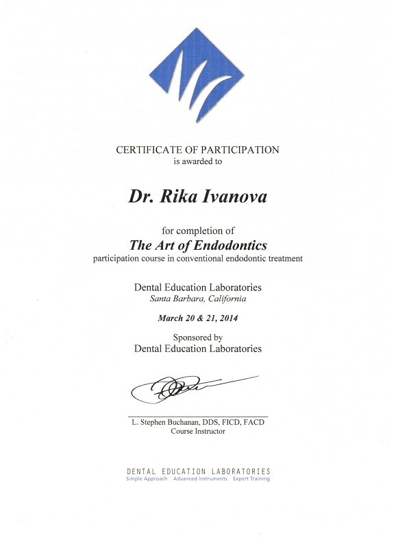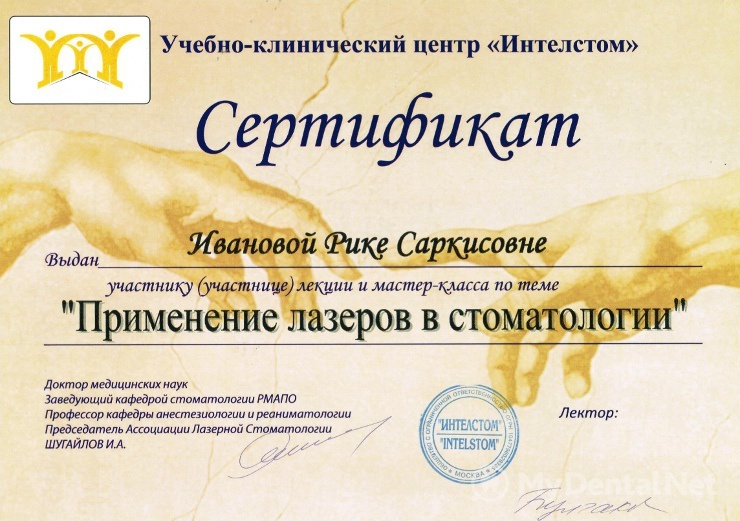 Июнь 2013 г. – сертификационный курс по повышению квалификации «Применение лазерных систем в стоматологии»