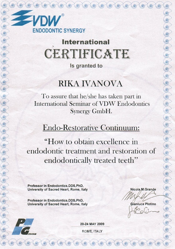 2008г — Международный эндодонтический семинар «Революционные технологии в эндодонтии» Италия-Германия