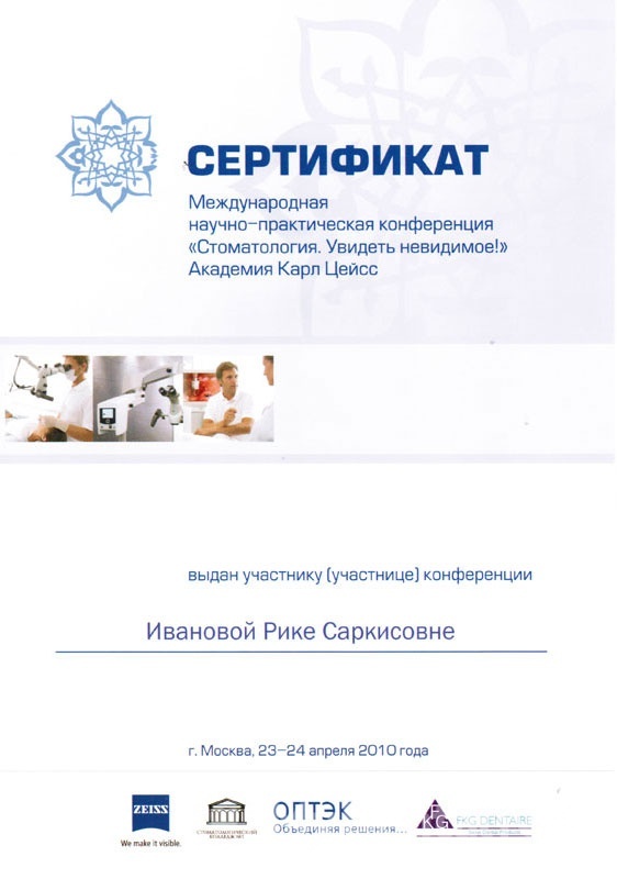 Апр. 2010г — Участие в международной научно-практической конференции «Стоматология. Увидеть невидимое! » Академия Карл Цейс.