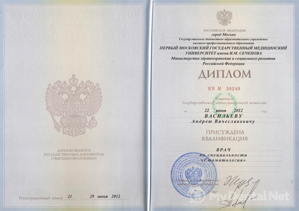 В 2012г окончил Первый МГМУ им И.М. Сеченова, стоматологический факультет; врач стоматолог
