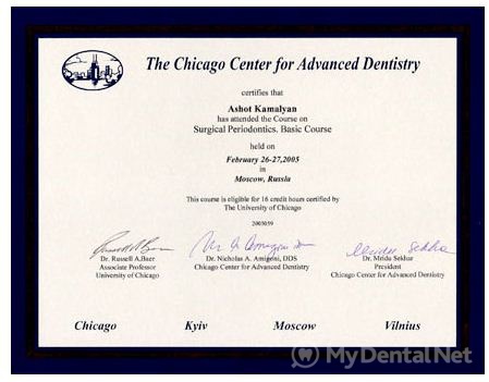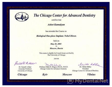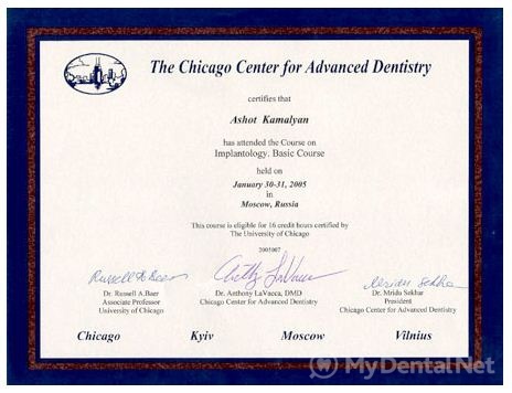 2005 Chicago Center for Advanced Dentistry (U.S.A., Chicago) - Сертификат-Implantology,