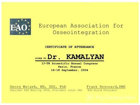 2004 European Association for Osseo integration (France, Paris) - Сертификат