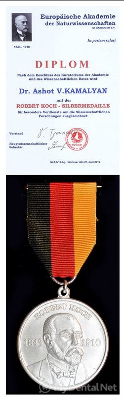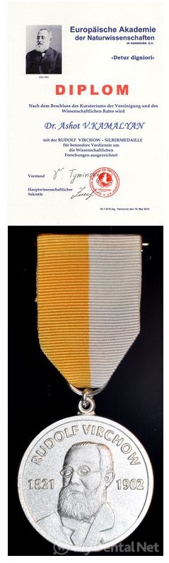 2010 Европейская Академия Естественных Наук - Награжден серебряной медалью им.Рудольфа Вирхова за значительные достижения в области медицины (Германия, Ганновер)