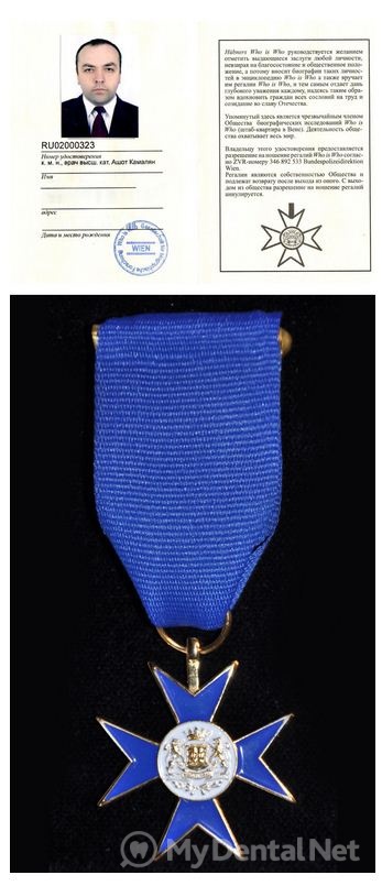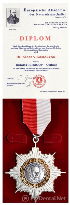 2010 Европейская Академия Естественных Наук - Награжден орденом им.НИКОЛАЯ ПИРОГОВА за заслуги в области медицины (Германия, Ганновер)