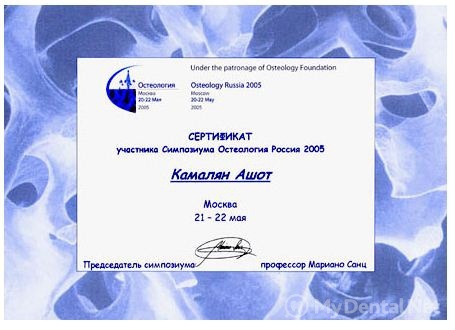 2005 Under the patronage of Osteology Foundation (Россия, Москва) - Сертификат