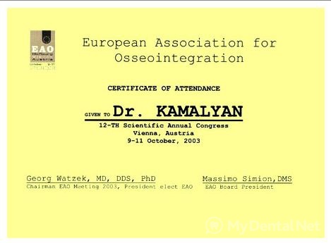 2003 European Association for Osseo integration (Austria, Vienna) - Сертификат