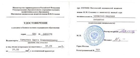 Челюстно-лицевой хирург (Сертификат специалиста; удостоверение).