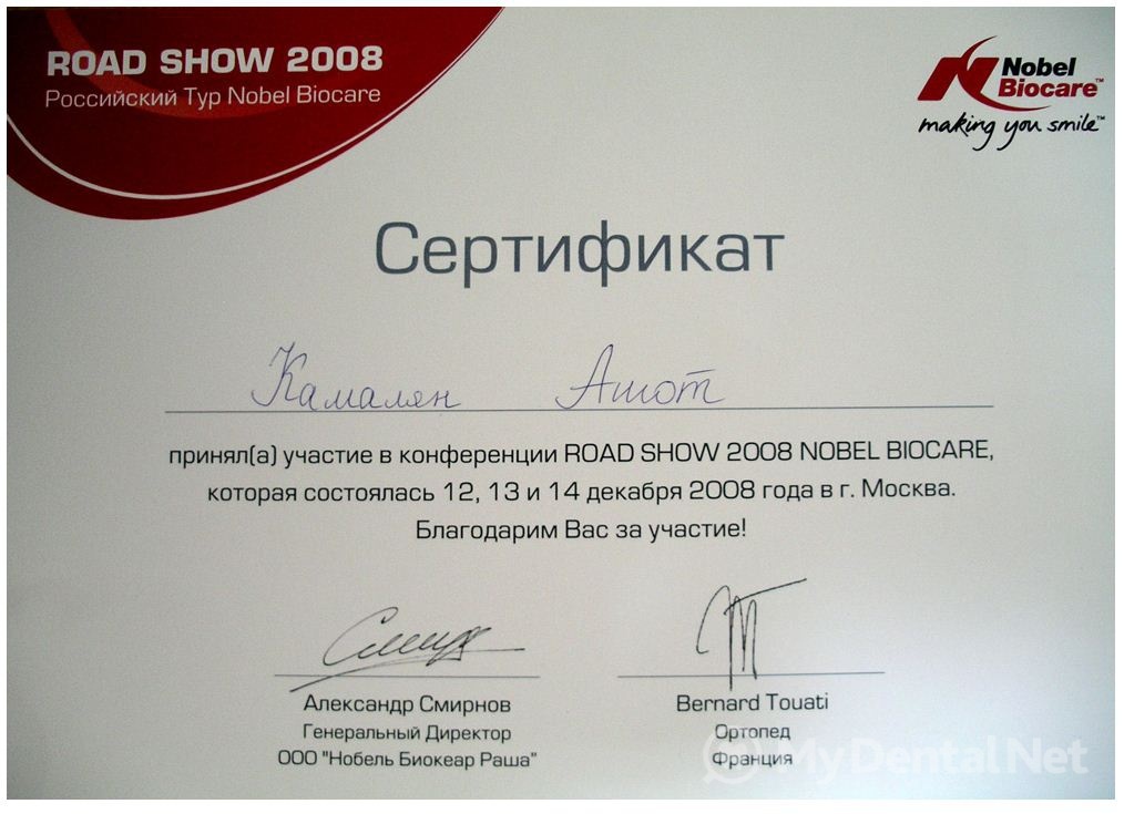 2008 Международный конгресс Nobel Biocare (Россия, Москва) - Сертификат