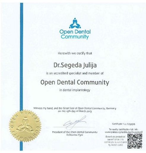 Проходила сертификацию на базе ММА по специализации: «Терапевтическая стоматология».