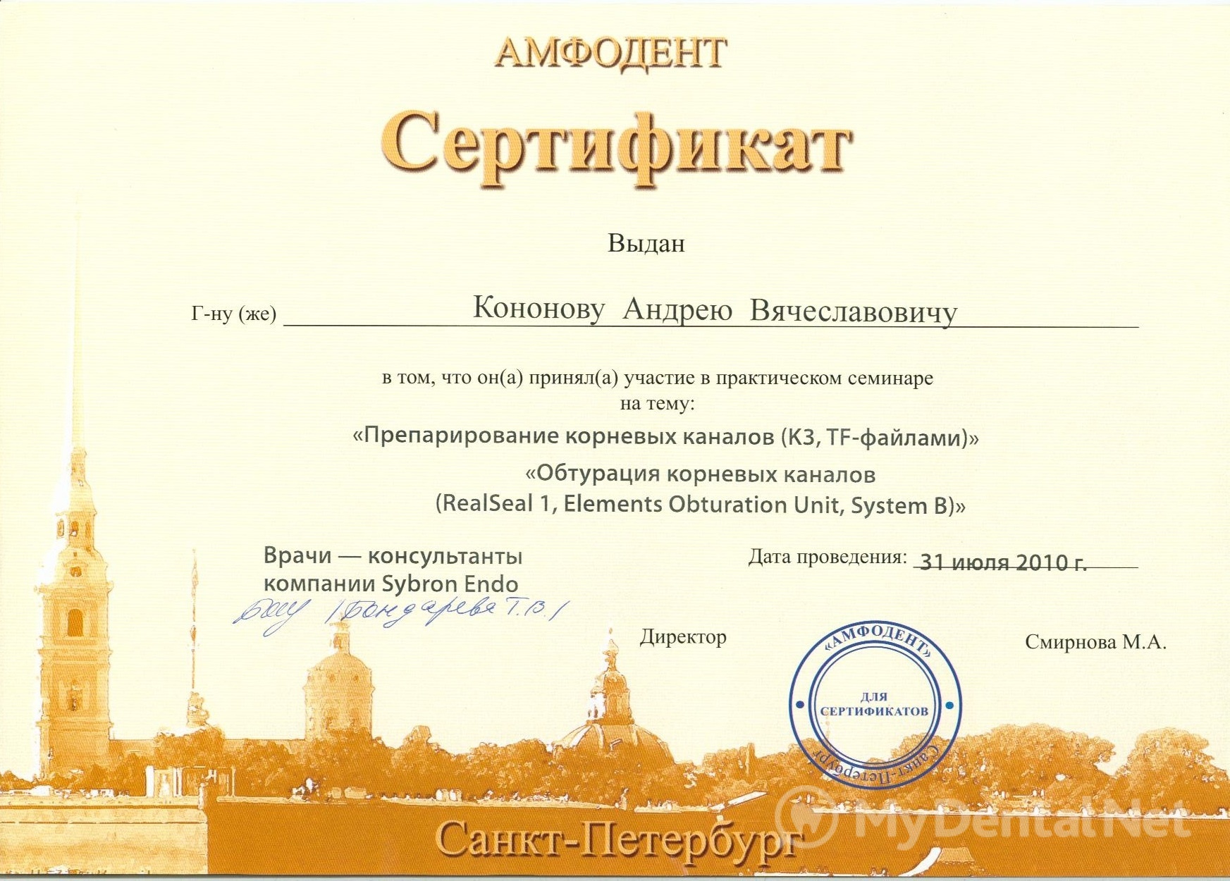 Имеет большое количество сертификатов по мастер-классу в различных сферах стоматологии.