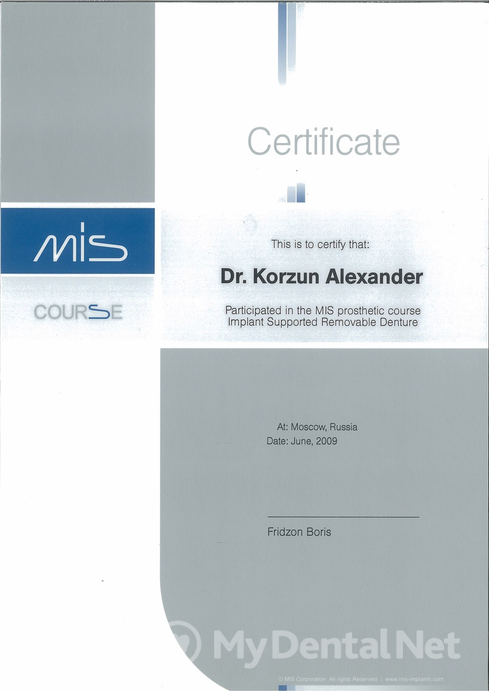 2009 — Курс «Participated in the prosthetic curse Implant Supported Removable Denture»