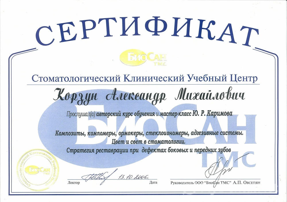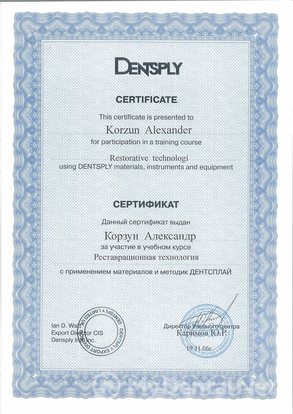 2006 — Курс «Реставрационная технология с применением материалов и методик ДЕНТСПЛАЙ»