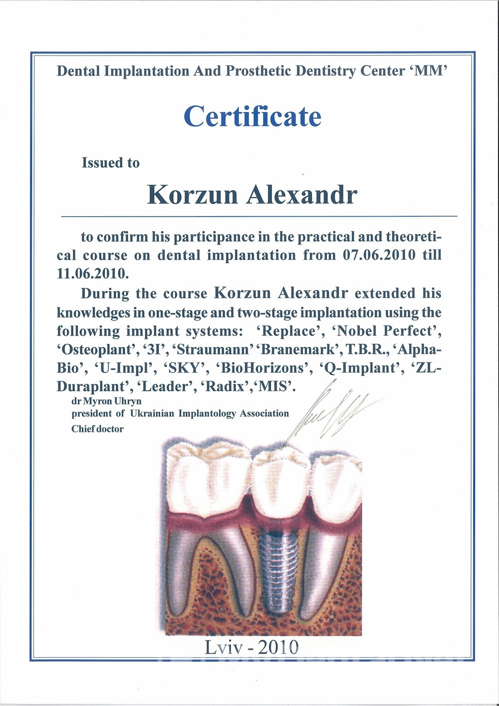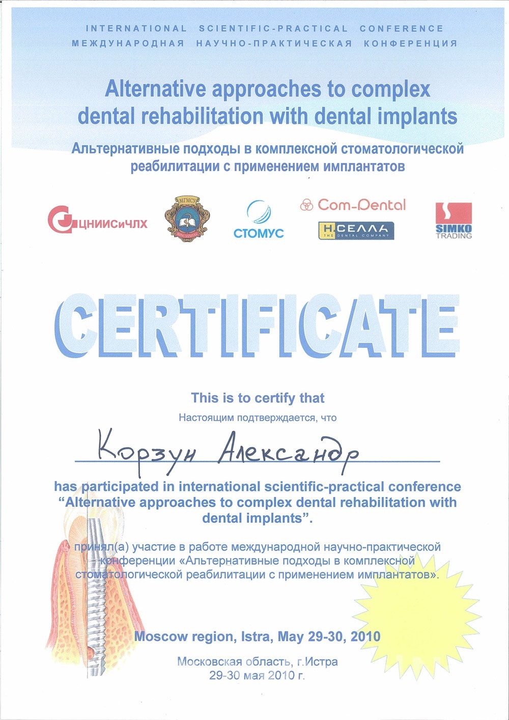 2010 — Курс «Dentale Implation end Prothetic Dentistry»