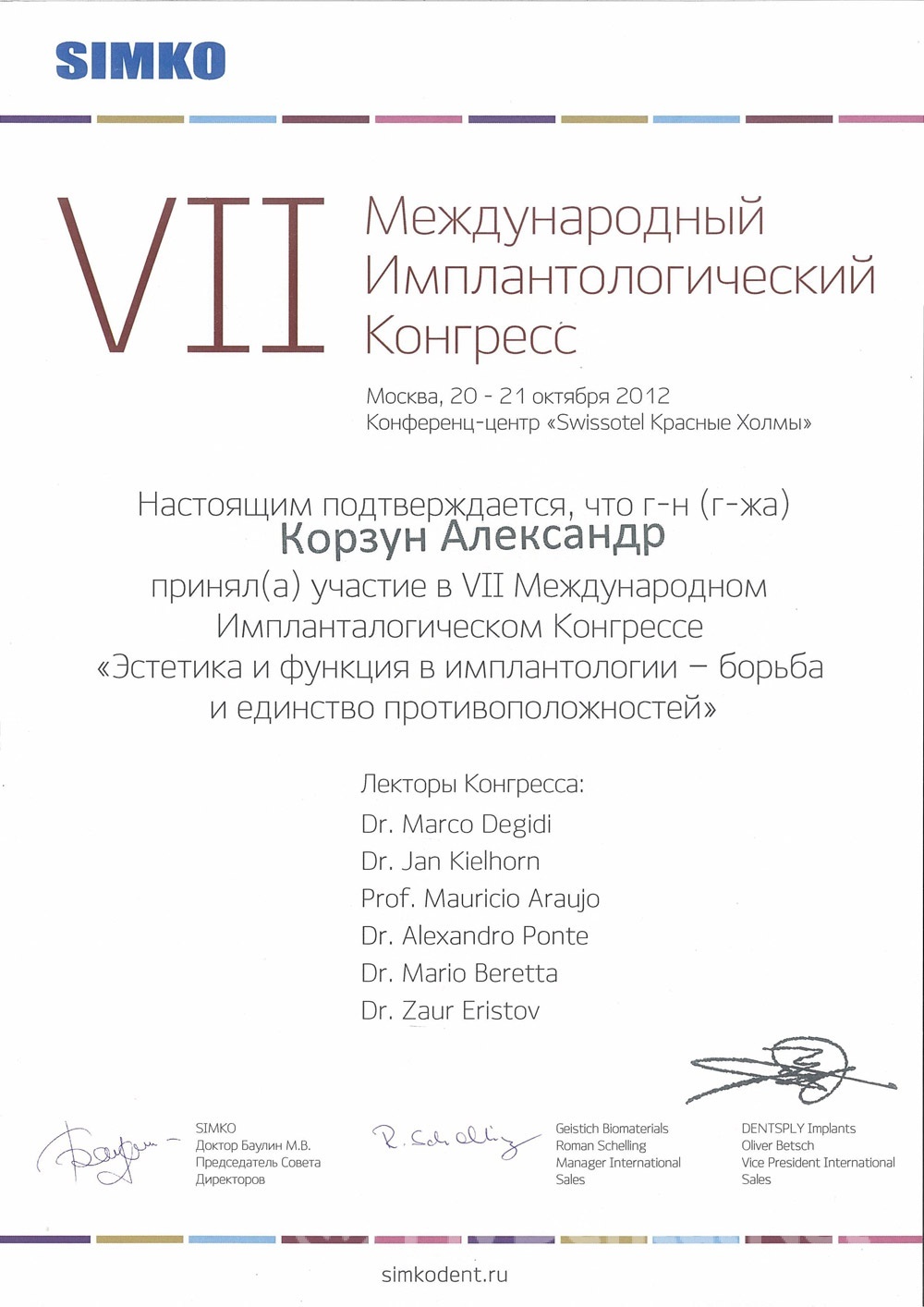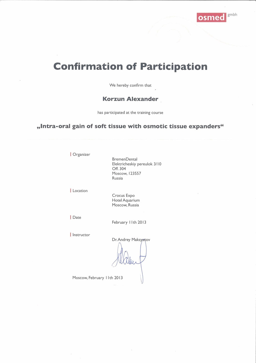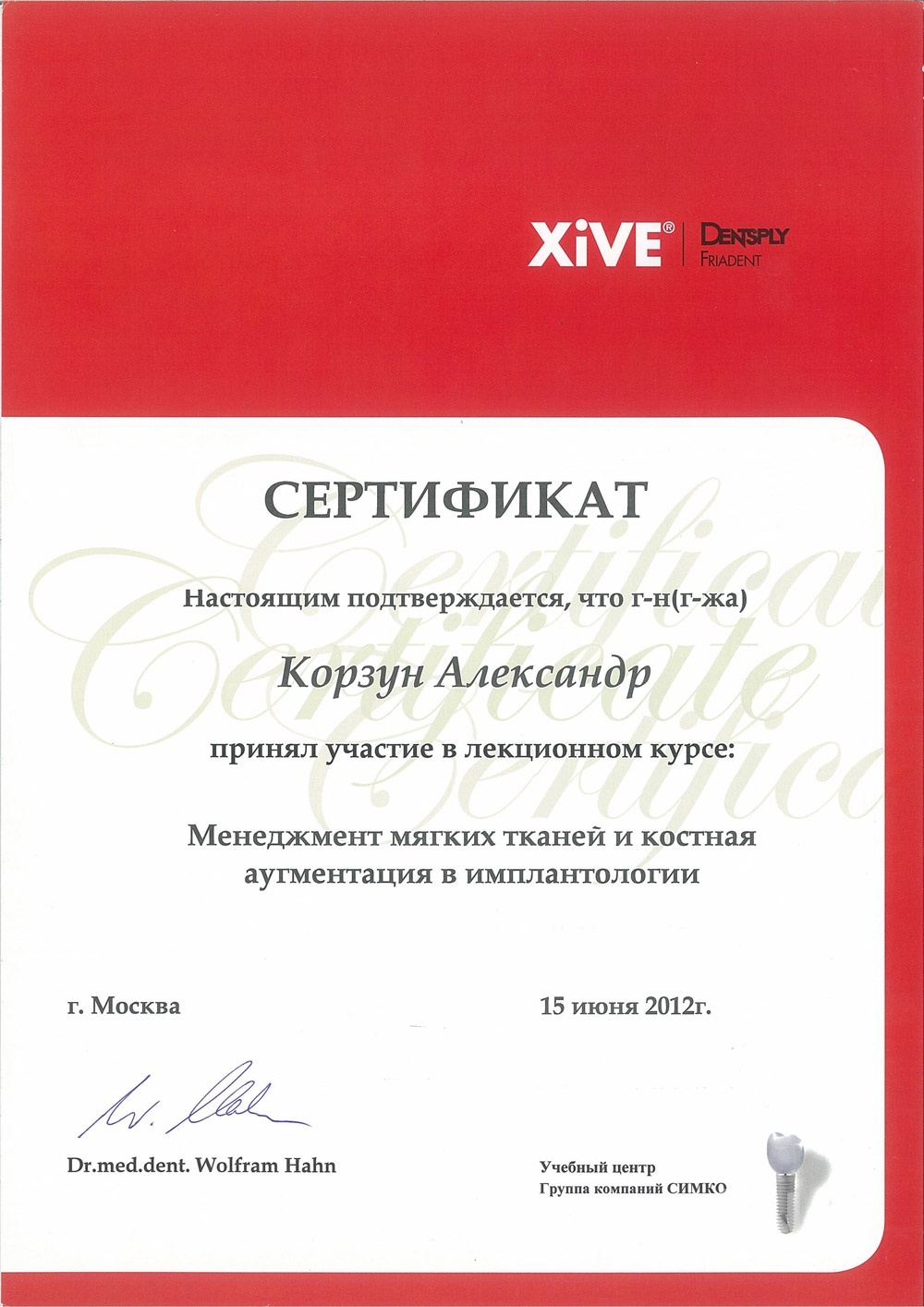 2012 — Курс «Менеджмент мягких тканей и костная аугументация в имплантологии»