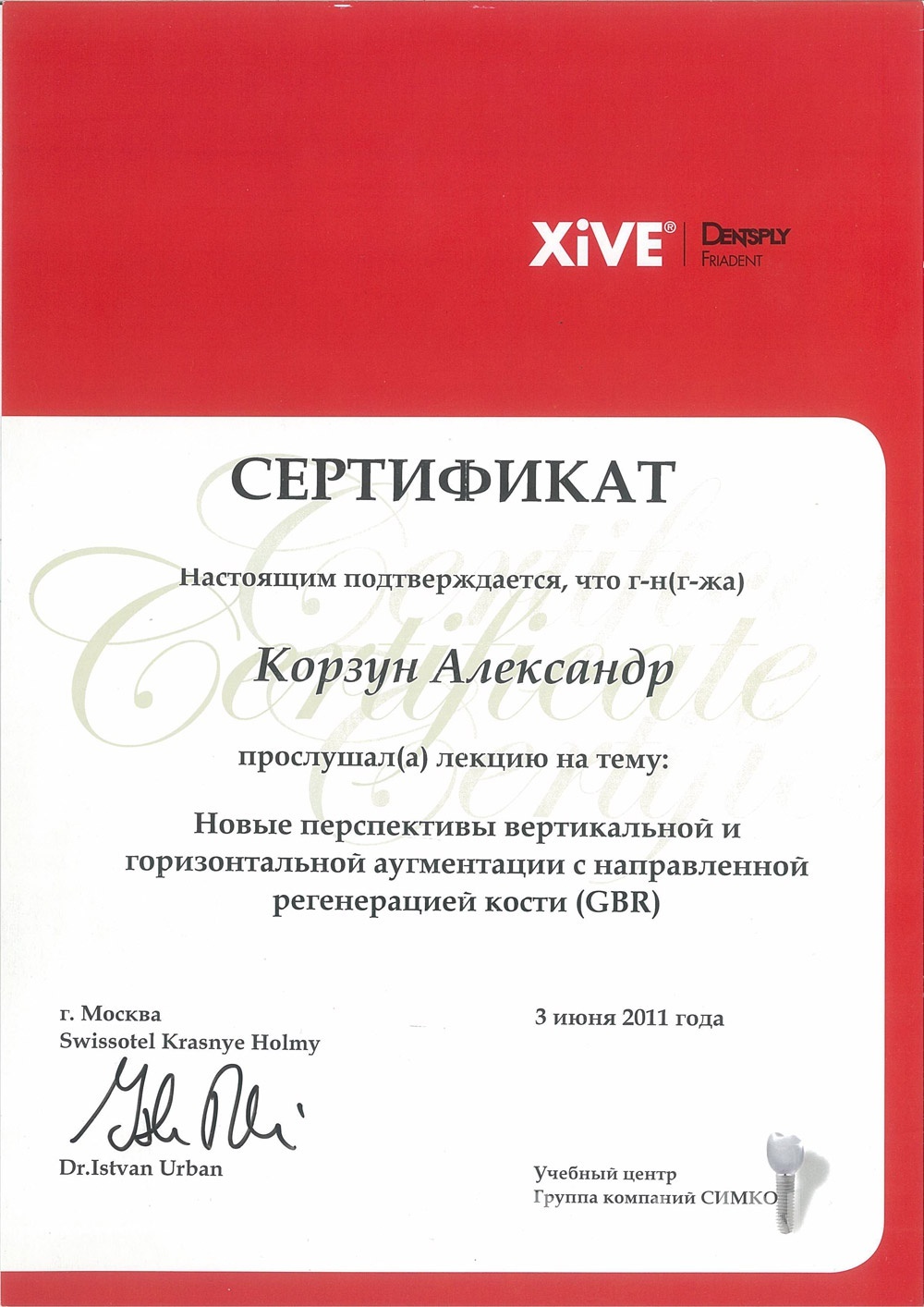 2011 — Курс «Новые перспективы вертикальной и горизонтальной аугументации с направленной регенерацией кости»