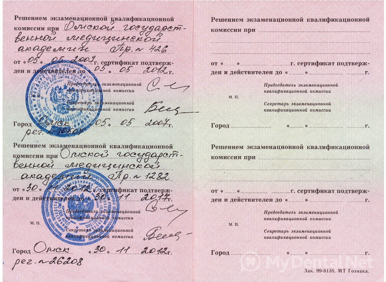 2007 г. - Курс по терапевтической стоматологии компании VDW «Революционные технологии в эндодонтичсеком лечении с помощью системы Mtwo NiTi инструментами».
