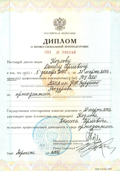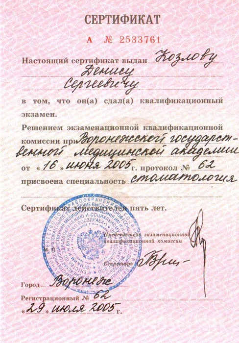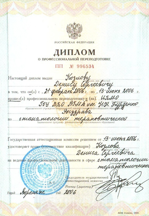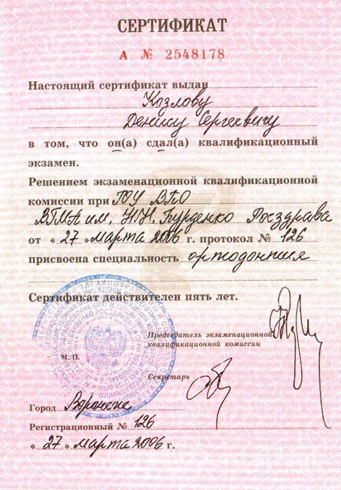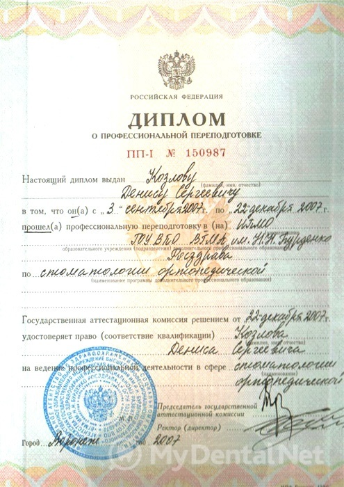 В 2005 году окончил клиническую ординатуру по специальности «Ортодонтия», «Ортопедическая стоматология»