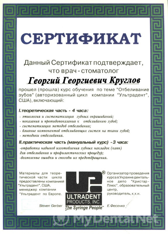 Врач-стоматолог. Специализация: общая стоматология, терапевтическая стоматология, протезирование.