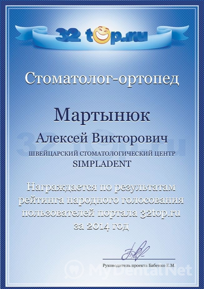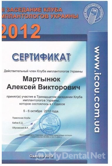 На счет клиники хочу сразу сказать, что приятно удивила профессиональная работа врачей, да и просто человеческое отношение к пациентам и их проблемам. Большое спасибо Мартынюку Алексею Викторовичу, который спас мне не один зуб! Протезировался у них в клиники не раз, за всем время установил мне 3 моста. Причем сделал это качественно, что потом никаких проблем не возникло. В общем лечение очень понравилось!