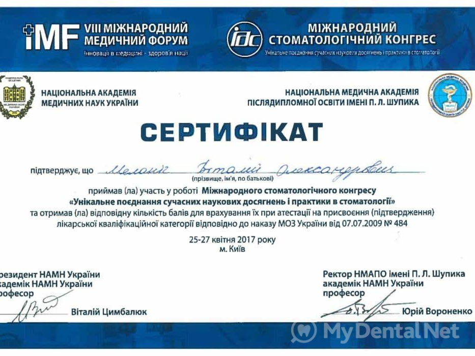Врач стоматолог ортопед в сети стоматологических клиник Люми-Дент в Киеве, проводит приём в отделении на Оболони.