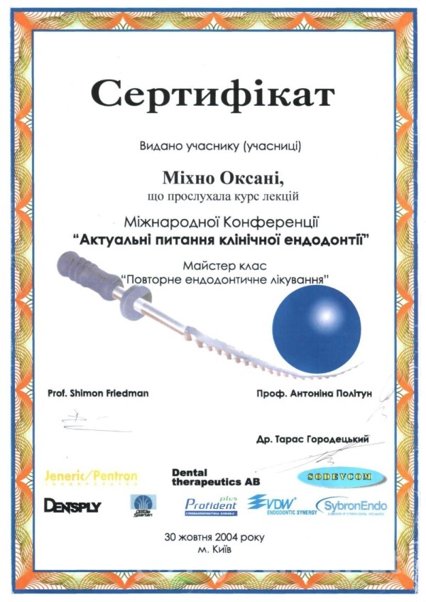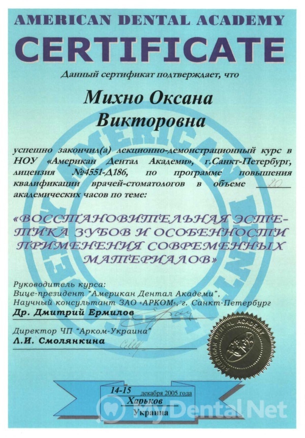 2009 год — Харьковская медицинская академия последипломного образования. Специальность «Ортодонтия».