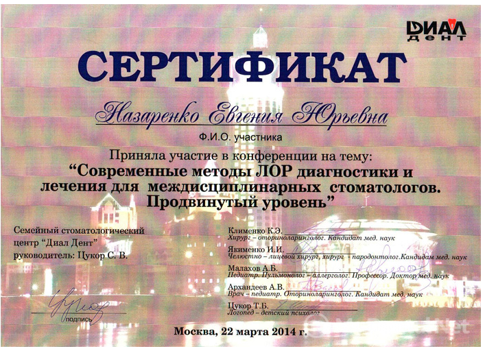 Окончила Тверскую государственную медицинскую академию в 2005 году. Член Российского Стоматологического Общества. Имеет обширные знания и опыт в области эндодонтии, детской стоматологии. Посещение семинаров и мастер-классов ведущих стоматологов помогает Евгении Юрьевне прекрасно ориентироваться в современных достижениях стоматологии и использовать наиболее прогрессивные методики и стоматологические материалы в своей практике. В Семейном стоматологическом центре "Диал-Дент" ведет прием как детский стоматолог и эндодонтист.