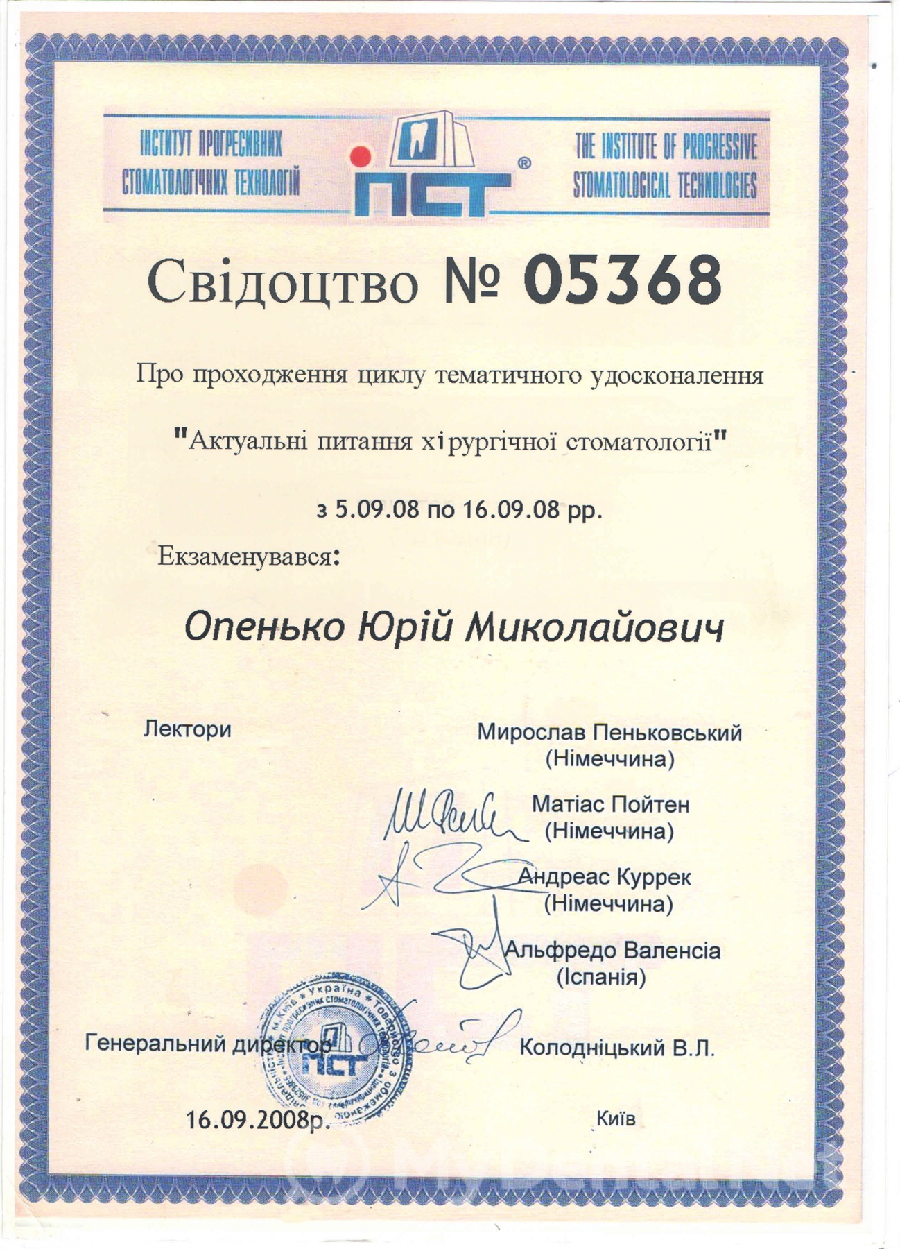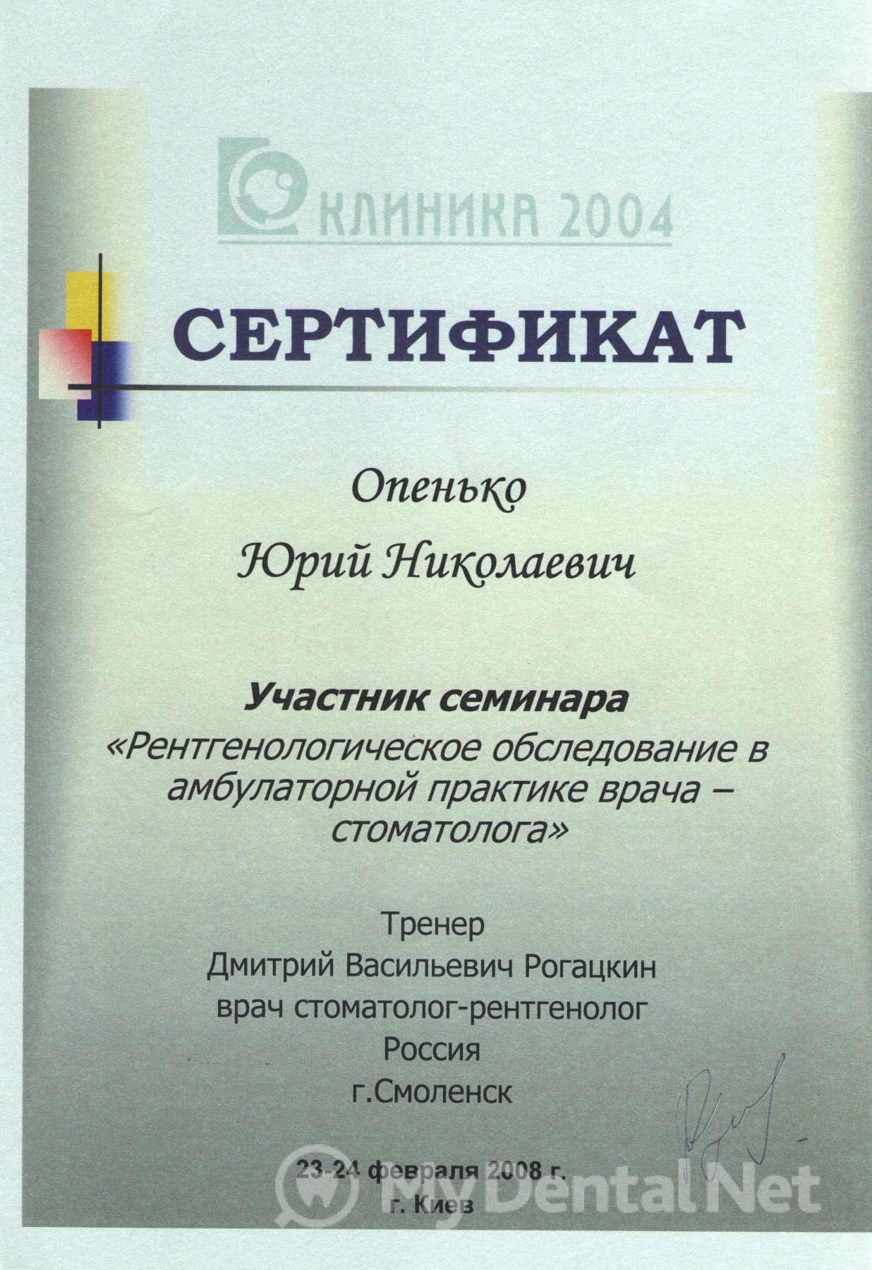 2008 год — участие в семинаре «Рентгенологическое обследование в амбулаторной практике врача-стоматолога».