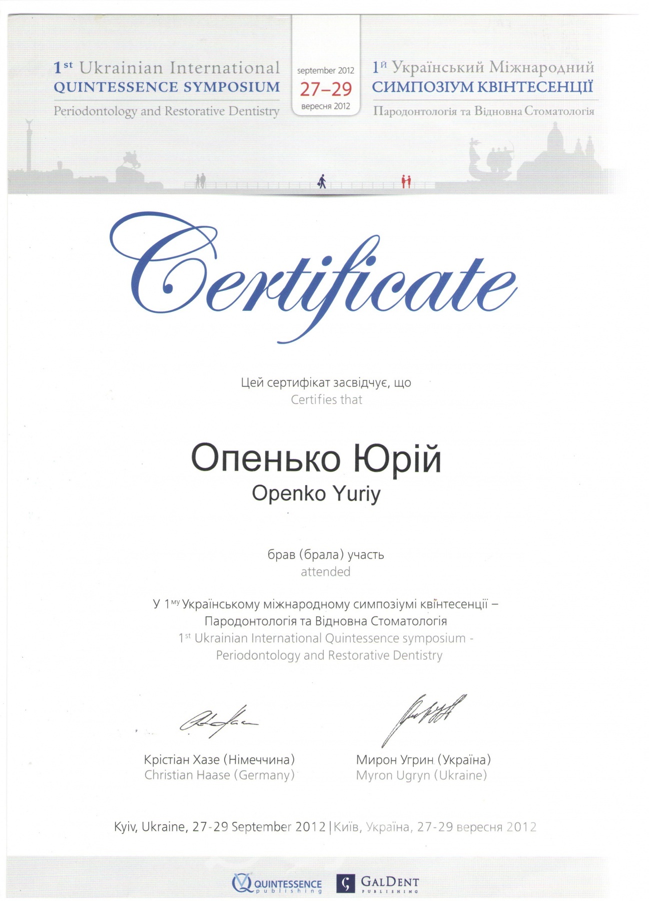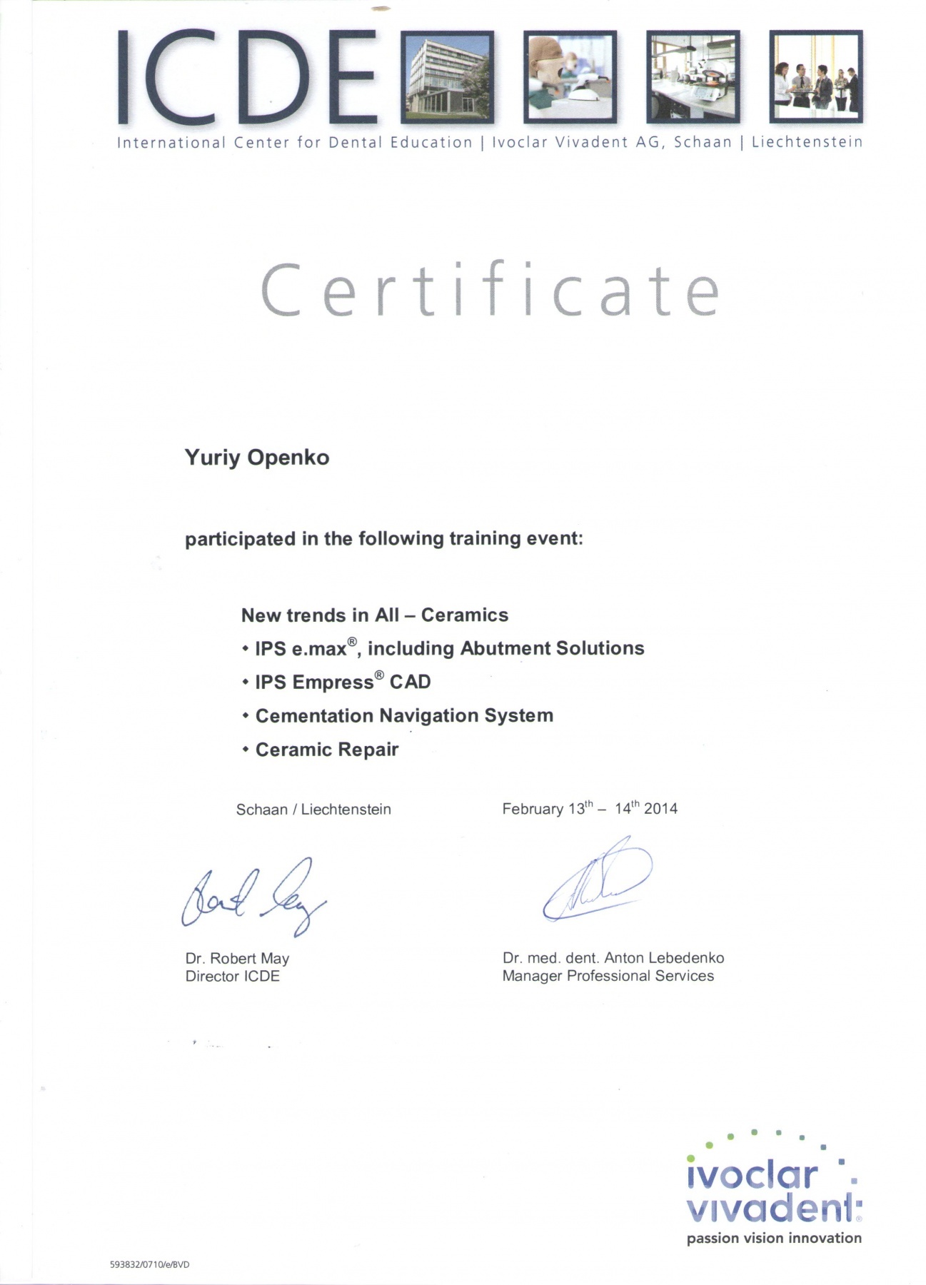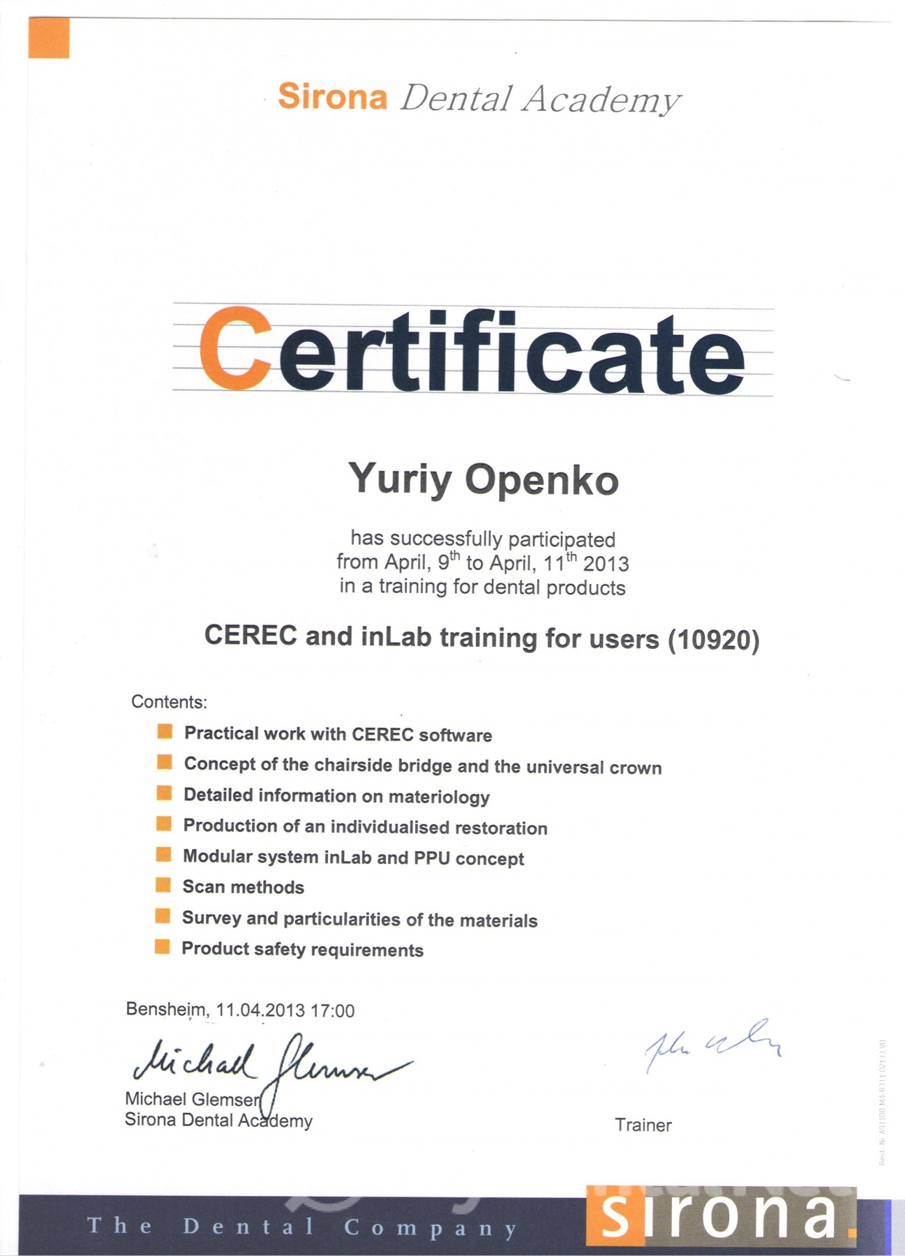 2004 год — прослушал теоретический и выполнил практический курс «Одноэтапная имплантация с использованием системы Q-имплантатов. Протезирование на одноэтапных Q-имплантатах» (компания Trinon, Германия).