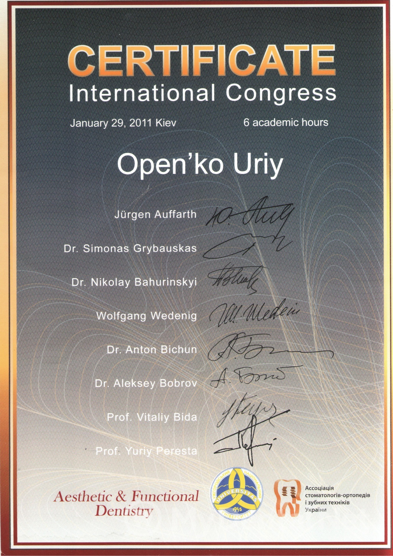 2011 год — участие в международном конгрессе по стоматологии, г. Киев.